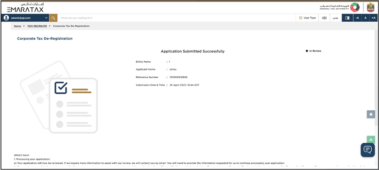 Once you submit your application for Corporate Tax De-registration, you will receive a Reference Number that is needed for future dealings with the FTA. So, you must keep the reference number safe with you.