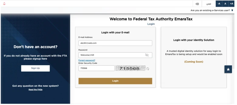 Go to the EmaraTax portal and create your account. It is completely free and takes about 10 to 15 minutes to complete the process. You can also login via UAE PASS.