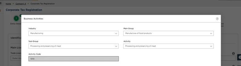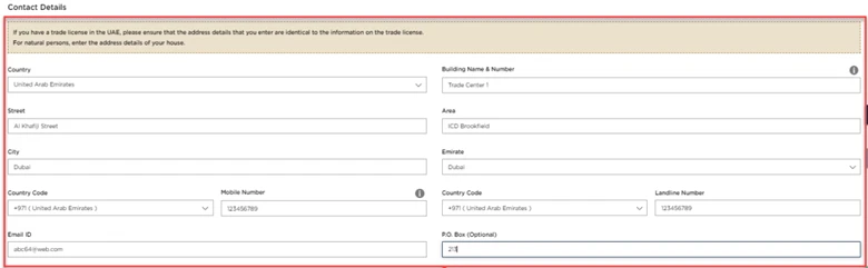 Add your company’s official address, email address, and phone number so the Federal Tax Authority (FTA) can contact you if needed. Please note the address should be the same as mentioned on your trade license. If you have multiple addresses, then you should mention the address where most of your business activities are performed.