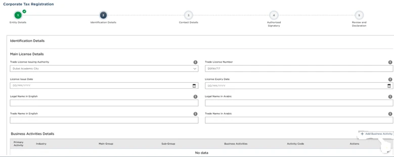 Carefully check all the details and submit the corporate tax registration application. FTA can take from a few days to weeks to approve/reject your application.