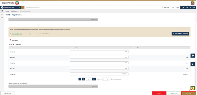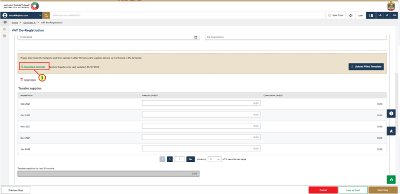The taxpayer’s VAT registration details are automatically filled and populated on the deregistration form.
