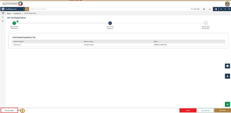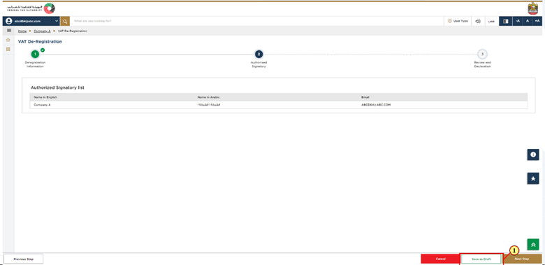 Click on Save as Draft option to save your application so that you can come back and continue it later. This is only in case you want to continue your deregistration application later on and want the information you have already provided to be saved. Note, it is generally preferred to always save your application.