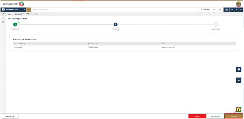 Check the authorized signatory details, then click Next Step option to save as well as move to the next section.
