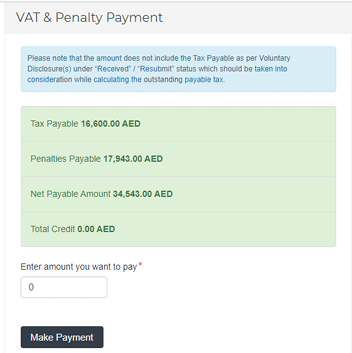 For those who don’t file or pay VAT return in given time, keep in mind that this will cause you a penalty. If you want to pay the penalties, simply open the portal, then go to My Payment tab. Here you can check and pay the amount under VAT & Penalty Payment.