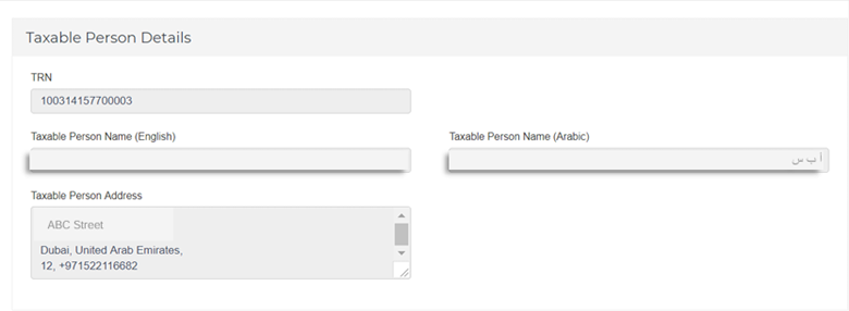 In this form, the Taxable Person’s details, including their TRN, name, and address, will automatically be filled, so you don’t need to fill these.
