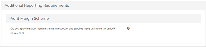 You need to confirm whether you used the Profit Margin Scheme during this tax period or not. Select Yes option only if you actually applied the scheme while filing this VAT return.